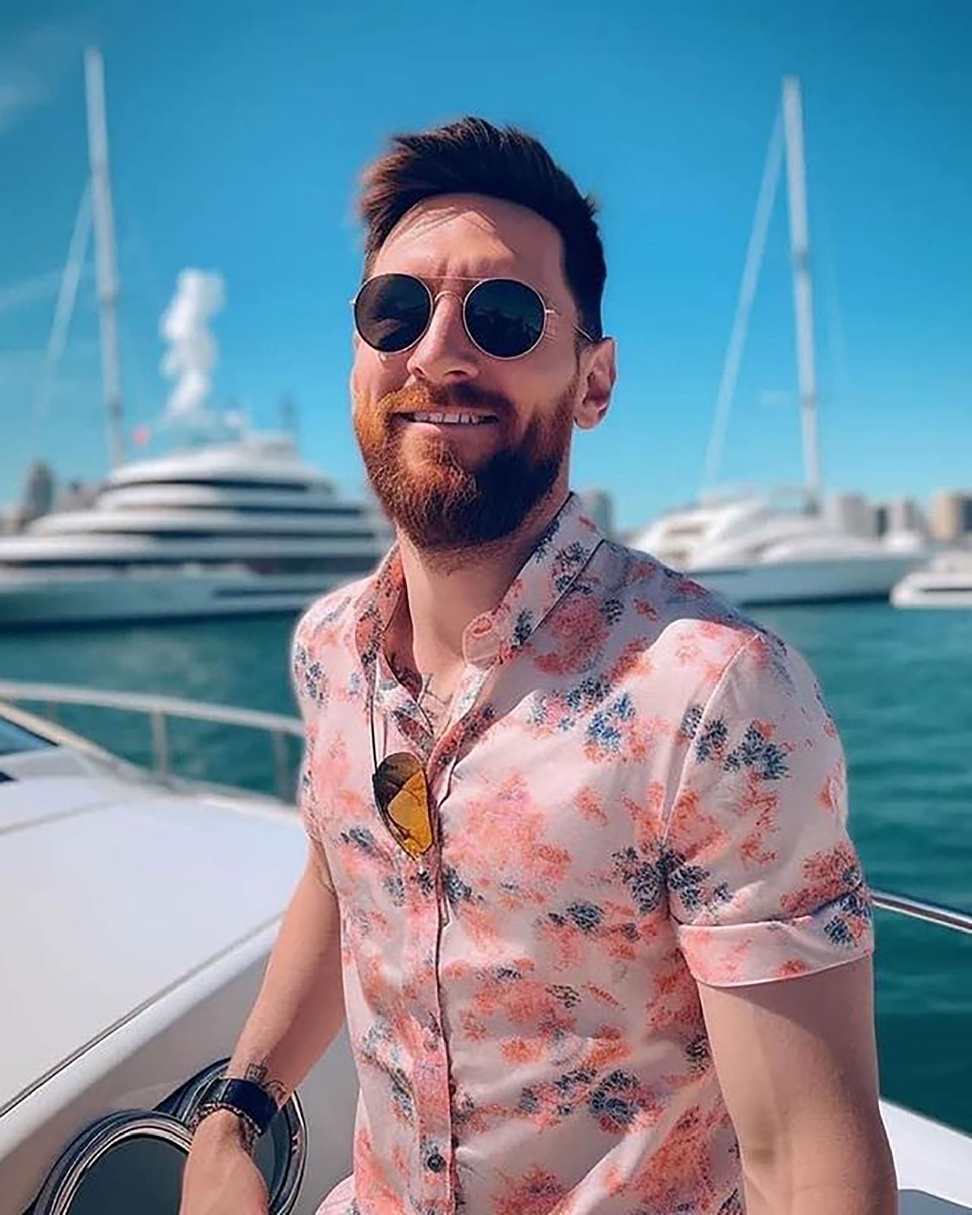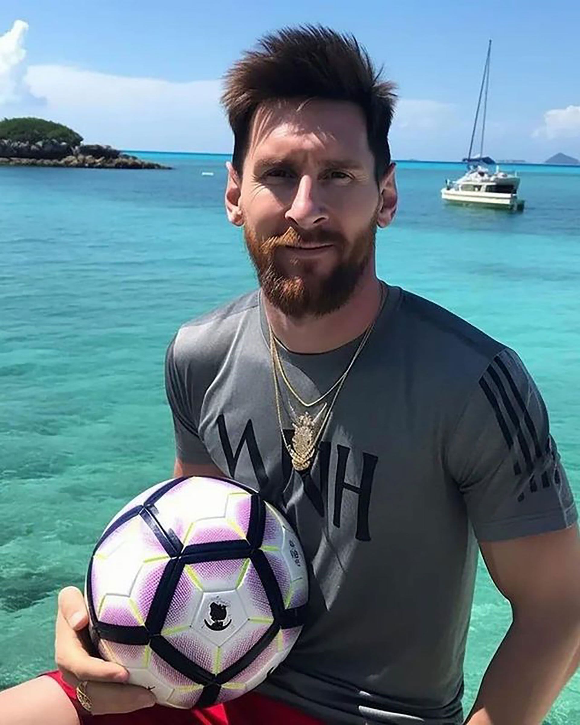 Las fotos, que parecen 100% reales y son muy detallistas y prolijas, muestran a Messi disfrutando del amigable clima de la zona, los paisajes y las playas.
