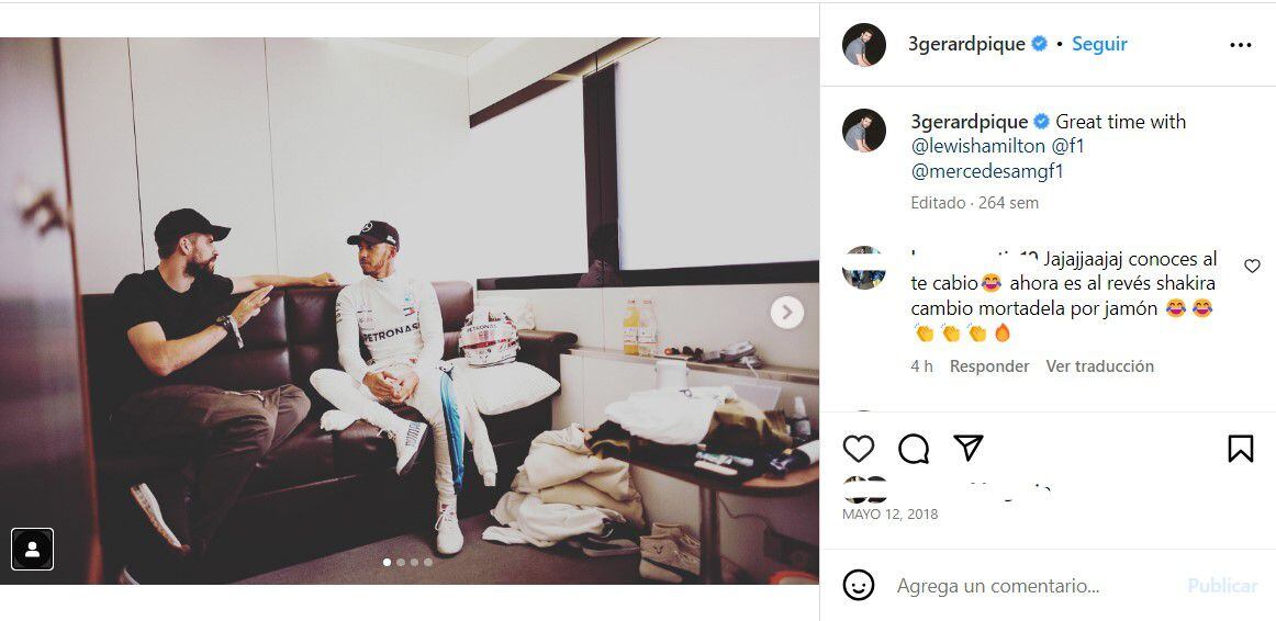 “Lo pasamos genial con Lewis Hamilton”, fue el mensaje que Gerard Piqué escribió en la leyenda de su entonces publicación.