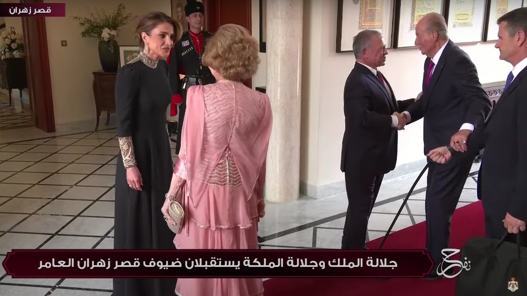 Al entrar al hall en el que aguardaban Abdalá y Rania, Sofía no ha dudado en adelantarse a su esposo, rompiendo así con la tradicional y protocolaria imagen que se repitió en infinidad de ocasiones durante su reinado, cuando era el monarca quien andaba por delante de la consorte.