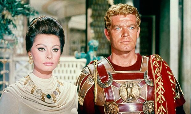 Sophia Loren haciendo de Lucilla en una cinta de más de tres horas de duración cuyo título no esconde la temática. La historia es muy similar a la que se narra en Gladiator: la muerte de Marco Aurelio (en este caso interpretado por Alec Guinness) comporta un cambio de mandato en la defensa del Imperio. Cambiando a Máximo por Livius (Stephen Boyd), que rechaza reemplazar al mandatario tras su fallecimiento, Cómodo (Christopher Plummer) se encargará de seguir los pasos políticos de su padre.