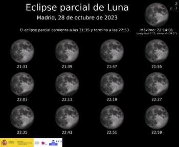 En este contexto, la luna se alzará sobre el cielo con una especie de mordisco en uno de sus laterales. El fenómeno comenzará a ser perceptible en la península a las 21:35 horas y terminará a las 22:53. No obstante, el Instituto Geográfico Nacional (IGN), advierte que no será un eclipse de gran magnitud.