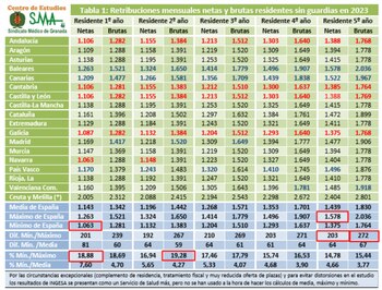 Por guardias, las mejores retribuciones pueden encontrarse en Asturias, Extremadura y Galicia, mientras que en el Instituto para la Gestión Sanitaria INGESA (Ceuta y Melilla), Madrid y Canarias ocupan los últimos lugares en casi todos los años de residencia.