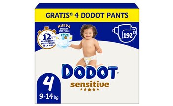 La Talla 4 de los Dodot Sensitive Talla 4 está indicada para bebés de 9 a 14 kilos, ideal para etapas más activas del desarrollo. El pack cuenta con 192 pañales, además de incluir 4 Dodot Pants gratis, y su precio es de 53,35 euros, con un descuento del 38 % respecto al precio original de 85,99 euros. La unidad sale a 0,28 euros.