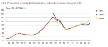 Esto indica que, aunque el mercado ha recuperado terreno, aún no ha llegado a los niveles de precio máximos de la subida de 2007, por lo que las actuales remontadas no suponen por ahora un riesgo grave para la estabilidad financiera. Eso sí, a juicio de los expertos del Banco de España, se ha producido una sobrevaloración de las viviendas de entre el 1,1% y el 8,5%: “El precio medio de la vivienda en España se encontraba al final de 2024 algo por encima de su nivel de equilibrio de largo plazo, entre el 1,1% y el 8,5%, frente a un rango estimado del 0,8% al 4,8% seis meses antes”, señalan.