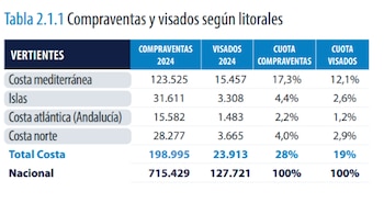 Las compraventas protagonizadas por extranjeros en las provincias de costa crecieron un 2,5 % en 2024, impulsadas mayoritariamente por residentes (+3,2 %) y en menor medida por no residentes (+1,9%). Destaca la intensidad del crecimiento en la Costa Norte (+20,1 % anual) frente al leve retroceso en las Islas (-5,5 %), si bien la cuota del mercado internacional continúa siendo más relevante en Islas y Costa Mediterránea, donde los extranjeros representan el 34% y el 28%, frente al 6% en la Costa Norte.