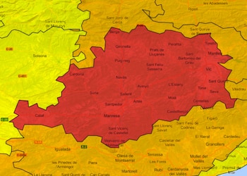 La Agencia Estatal de Meteorología (Aemet) activa el aviso rojo, que implica riesgo extremo, en la provincia de Barcelona, donde se espera que las lluvias que acompañan a la tormenta dejen hasta 60 litros en una hora y acumularán 120 litros en 3 o 4 horas en puntos de la depresión central. Por su parte, en Girona y Tarragona se mantiene el aviso naranja (riesgo importante) por registros que oscilarán entre 40 y 60 litros en una hora.
