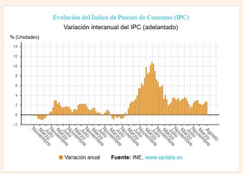 Según datos del Instituto Nacional de Estadística el índice de Precios al Consumo (IPC) mantuvo su tasa interanual en agosto en el 2,7%, la misma que en julio, debido a que el comportamiento de los precios de los alimentos y de la electricidad compensó el de los carburantes.