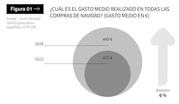 Si en 2024 los españoles planearon gastar una media de 583 euros en Navidad y acabaron gastando 499 euros, un 14% menos; este año la moderación se mantiene y uno de cada tres españoles prevé reducir su gasto hasta situar la media en los 462 euros.