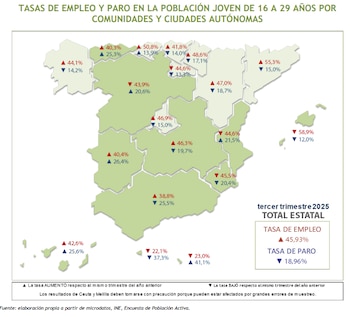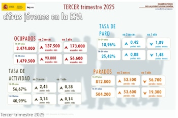 Otro factor que impide la convivencia de los jóvenes es el empleo. Según datos del Instituto Nacional de la Juventud (Injuve), la tasa de paro entre los menores de 30 años se situó en el 18,95% a cierre del tercer trimestre de este año. Mientras que el número total de parados menores de 25 años cerró noviembre en 188.392 personas, tras caer un 2,8%, señalan desde el Ministerio de Trabajo.