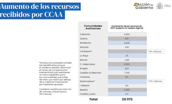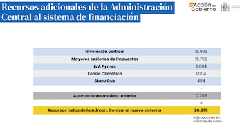 De salir adelante el nuevo modelo, todas las regiones ingresarían más el próximo año. Recibirían 20.975 millones de euros más y el sistema aportaría a las comunidades incluidas en el régimen común un total de 224.507 millones de euros.
