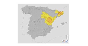 La agencia meteorología ha decretado la alerta naranja y amarilla por lluvias y tormentas en zonas de Cataluña, la Comunidad Valenciana, Aragón, La Rioja, Castilla y león y Castilla-La Mancha.