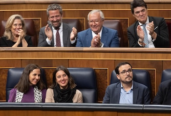 El líder del PP, Alberto Núñez Feijóo, ha preguntado al socialista Pedro Sánchez en el Pleno del Congreso por qué piensa cesar a Irene Montero cuando presume de presidir el Gobierno más feminista, unas palabras que la titular de Igualdad ha recibido con una sonrisa de resignación. "Con lo bien que lo han hecho en Igualdad y resulta que la señora Montero es una pésima ministra, es sorprendente --ha ironizado Feijóo en su respuesta al discurso de investidura de Sánchez--. ¿El Gobierno más feminista de la historia y va a cesar a la ministra de Igualdad?". En el banco azul del Gobierno, tanto Irene Montero como la secretaria general de Podemos, Ione Belarra, han sonreído ante las palabras de Feijóo y la ministra de Igualdad no ha podido evitar asentir con resignación. Y es que, tras el discurso de investidura Sánchez, la ministra de ha Igualdad ha advertido al presidente y a la líder de Sumar, Yolanda Díaz, de que pretender "echar a Podemos" del Gobierno dificultará "enormemente" que se pueda "pasar de las palabras a los hechos", así como "frenar la ofensiva reaccionaria" desplegada por la derecha y el poder judicial. En declaraciones a los medios en el Congreso, la 'número dos' de los morados ha apelado directamente a Sánchez, pues está en "su mano" decidir si Podemos forma parte o no del Ejecutivo dado que sería bueno disponer de una auténtica coalición o si se va a un modelo donde mande solo el PSOE.