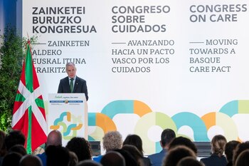 El Lehendakari, Iñigo Urkullu, ha defendido un modelo de cuidados "propio, público y comunitario, alejado de un sistema tradicional que delega la responsabilidad del cuidado a las familias y, en particular, a las mujeres", en el marco del primer Congreso vasco sobre cuidados que, bajo el título 'Avanzando hacia un pacto vasco por los cuidados', se celebra entre este miércoles y jueves en el centro Tabakalera de San Sebastián. En su intervención en la inauguración del congreso, organizado por el Departamento de Igualdad, Justicia y Políticas Sociales del Gobierno Vasco y en el que también han participado la diputada general de Gipuzkoa, Eider Mendoza, y el alcalde, Eneko Goia, Urkullu ha instado a "seguir trabajando conjuntamente en la construcción de un modelo vasco de cuidados". "Un modelo propio de cuidados que reconoce, valora y se adecua a las características de la sociedad vasca. Contamos con el pilar de nuestro sistema de protección social, basado en la cooperación público-privada y, en particular, público-social", ha resaltado. En esa línea, ha puesto en valor "la colaboración entre las instituciones, el sector público y el social para lograr un sistema de cuidados eficaz y equitativo", y ha recordado que "es fundamental que todas las partes involucradas se comprometan a continuar con la inversión y la innovación en este sector, garantizando que los cuidados sean accesibles y de calidad para todos los ciudadanos, independientemente de su género, origen o cualquier otra condición". Con el objetivo de transformar el trabajo de cuidados en "un motor de igualdad y cohesión social", el Lehendakari ha destacado "la necesidad de revalorizar este trabajo y garantizar el derecho a los cuidados". Así, ha resaltado las cinco propuestas de la Organización Internacional del Trabajo: "reconocimiento, remuneración digna, reducción del peso del cuidado familiar, redistribución equitativa entre géneros, y representación de quienes cuidan y requieren cuidados en la formulación de políticas públicas". En este sentido, Iñigo Urkullu ha subrayado los "esfuerzos" de Euskadi en la promoción del Pacto Vasco por los Cuidados, basado en las premisas de la Alianza Global por los Cuidados de ONU Mujeres, entre las que destacan la reorganización del sistema de cuidados, la reducción de la desigualdad de género, la implementación de un enfoque basado en los derechos humanos y la promoción de la corresponsabilidad. "El Pacto Vasco por los Cuidados atiende a seis prioridades: revertir la actual organización de los cuidados, reducir la desigualdad de género, implementar el enfoque de derechos humanos, abordar necesidades diferenciadas, desde un enfoque de género e interseccional, impulsar las '5 R', y promover la corresponsabilidad", ha detallado. Asimismo, ha hecho énfasis en "la transición de Euskadi hacia un modelo propio de cuidados que reconoce, valora y se adecua a las características de la sociedad vasca, basado en una cooperación más estrecha entre los sectores público, privado y social". De igual manera, Iñigo Urkullu ha subrayado "el progreso significativo en la inversión para este nuevo modelo", destacando el aumento de la inversión en el Sistema Vasco de Servicios Sociales. En ese sentido, ha recordado que "desde la aprobación de la ley de Servicios Sociales en 2008, la inversión pública en este ámbito se ha duplicado, con el objetivo de alcanzar los 1.500 millones de euros para 2025". Según ha afirmado, "la coherencia de estas políticas de cuidado exige un enfoque transversal, integrando vigilancia y políticas de igualdad. Este sistema se está construyendo con la cooperación de todas las instituciones vascas y especialmente con el tercer sector social". Finalmente, el Lehendakari ha hecho un llamamiento a continuar "valorando y mejorando "lo realizado hasta la fecha, y ha emplazado a "la búsqueda de consensos amplios y colaboración para alcanzar el objetivo común del Pacto Vasco por los Cuidados". Al inicio de la inauguración, una veintena de mujeres del Movimiento Feminista han protestado y han coreado lemas pidiendo que "no se haga negocio con los cuidados", tras lo que han sido expulsadas de la sala y continuado su protesta en el exterior. CONGRESO SOBRE CUIDADOS El Congreso sobre cuidados pretende ser un foro de puesta en común de experiencias, reflexión y debate para transitar hacia un modelo de organización de los cuidados desde un liderazgo público y una atención comunitaria. La primera jornada cuenta con la intervención de Flaviana Teodosiu, responsable del equipo de cuidados de larga duración de la Comisión Europea, quien ha impartido la ponencia inaugural que lleva por título 'La estrategia europea de cuidados'. Por su parte, José Luis Fernández, profesor asociado de la London School of Economics y director del Care Policy and Evaluation Centre, será el encargado de la ponencia marco que tratará sobre los 'Retos de los cuidados de larga duración en Europa'. Estas dos ponencias ponen las bases de esta primera jornada que propone dos bloques de sesiones simultáneas. El primer bloque contiene tres sesiones para abordar las políticas de cuidados, la transición demográfica y la contribución del Tercer Sector Social de Euskadi. En el segundo bloque se compartirán aprendizajes y buenas prácticas desde una doble perspectiva. como son los cuidados en la comunidad y los cuidados en el ámbito residencial. Entre el primer y segundo bloque se abrirá una mesa de debate para reflexionar sobre "cómo avanzar hacia un modelo de cuidados más personalizado y comunitario". SEGUNDA JORNADA La consejera de Igualdad, Justicia y Políticas Sociales del Gobierno Vasco, Nerea Melgosa, abrirá el jueves la segunda jornada del Congreso con la ponencia 'Cuidar y recibir cuidados con derechos, en libertad e igualdad. Bases para un acuerdo por los cuidados en Euskadi'. En esta sesión se escuchará a personas cuidadoras, familiares, 