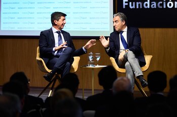 El nuevo vicesecretario de Política Autonómica y Municipal y Análisis Electoral del PP, Elías Bendodo, ha querido dejar claro este viernes que se siente "reforzado" con sus nuevas responsabilidades en el partido, donde antes era coordinador general, y ha descartado volver a Andalucía. Así se ha pronunciado Bendodo durante su participación, en Sevilla, en los encuentros informativos de Europa Press Andalucía en colaboración con la Fundación Cajasol. Junto a él, también ha participado el presidente del Consejo Económico y Social (CES) de Andalucía y exvicepresidente de la Junta, Juan Marín. Elías Bendodo ha querido dejar claro que se siente "contento y satisfecho" con su nueva responsabilidad, en la que va a tener tarea por delante, al tiempo que ha apuntado que tenía "sentido" que la figura de coordinador general desapareciera al no gobernar el PP en España. Asimismo, ha expresado que "las cornadas que no son mortales, te fortalecen": "Me siento reforzado; estoy contento y tengo la confianza de mi presidente". Bendodo ha dicho que fue "feliz" en Andalucía en su etapa como consejero del primer Gobierno andaluz de Juanma Moreno, y ha asegurado que no ha pedido volver "ni volvería" a la comunidad. "Son etapas pasadas y positivas; ahora hay un Gobierno con mayoría amplia que está haciendo bien las cosas", ha señalado el dirigente popular, para quien "ni son las mismas circunstancias ni las personas". En su opinión, es tan importante "saber irse como saber llegar". Ha expresado que cree que hizo "lo correcto" cuando decidió dar el salto a la política nacional, y ahora está "encantado de trabajar en el equipo" de Alberto Núñez Feijóo. "Donde se ha sido feliz, creo que no hay que volver", ha apuntado. Respecto al hecho de que Cayetana Álvarez de Toledo y Rafael Hernando, hayan sido designados como portavoces adjuntos en el Congreso de los Diputados, ha señalado que es un "acierto" y que "ensanchar" el partido ha sido siempre un gran éxito de Feijóo, en cuyo proyecto "cabemos todos".