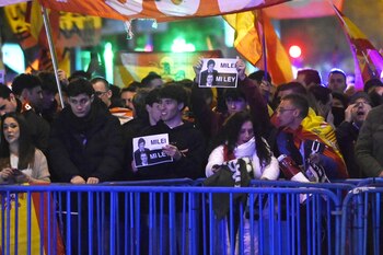 Unas 200 personas, según ha confirmado la Delegación de Gobierno, se han vuelto a manifestar por vigesimonovena noche consecutiva frente a la sede nacional del PSOE en Ferraz, después de que la concentración del día anterior registrase la asistencia más baja desde que se iniciaran las protestas contra la amnistía y los pactos de los socialistas con los partidos independentistas catalanes. Los manifestantes portaban banderas de España, carlistas y también alguna franquista. Han entonado en varias ocasiones el 'Cara al Sol' y cánticos honrando a José Antonio Primo de Rivera. Además, han gritado en contra del presidente del Gobierno, Pedro Sánchez; el expresidente catalán Carles Puigdemont y la Policía Nacional. Además, se han referido a otros exmiembros del Gobierno con cánticos como 'Irene Montero vuelve a tu cajero' y también se han escuchado gritos machistas, homófobos y tránsfobos. En Ferraz también ha habido presencia de banderas de Israel, además de calificar al PSOE y Sumar como 'amigos de Hamás' Los asistentes han comenzado a llegar a la esquina de Ferraz con Marqués de Urquijo a las 19.30 horas para comenzar el ya habitual rezo del Rosario y posteriormente se ha iniciado la protesta, situándose delante de las vallas de seguridad que ha colocado la Policía Nacional y que han cortado el tráfico en esa misma calle, además de limitar el paso para peatones. En la manifestación, el movimiento bautizado como 'Noviembre Nacional' ha dispuesto una mesa en la que había un cartel con el logo del PSOE, donde repartían chucherías a los asistentes y colocando rallas de azúcar glas simulando cocaína. La cifra de este viernes es altamente inferior a la registrada justamente hace una semana, cuando la protesta reunió a unas 3.000 personas y recibió el apoyo del sindicato Solidaridad, afín a Vox. En la jornada anterior, el jueves 30 de noviembre, algo más de 150 asistentes acudieron a manifestarse a Ferraz, en una noche que estuvo marcada por las fuertes lluvias en la capital española.