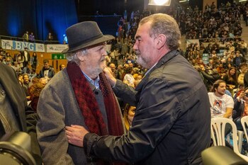 El Multiúsos Fontes do Sar de Santiago ha rujido este viernes en el cierre de la campaña electoral del Bloque Nacionalista Galego (BNG) que ha desbordado las previsiones de acoger 2.000 personas --han tenido que retirar varias lonas inicialmente colocadas hasta las 3.000 personas-- en una campaña que, en palabras del candidato Dani Castro (número dos por Lugo) ha sido "un campañón". Ha sido, también el final de un camino de reconciliación interna que ha cerrado filas en torno al liderazgo de Ana Pontón y que ha desembocado en una de los abrazos más simbólicos, el del histórico nacionalista Xosé Manuel Beiras, con el que fuera su sucesor al frente del Bloque Anxo Quintana, una sucesión convulsa del que logró --hasta ahora-- el techo electoral en votos y de quien fue el único --después y por el momento-- miembro del Gobierno gallego. La carrera hacia las urnas del BNG comenzó en diciembre con la convocatoria electoral. Al poco de arrancar, la formación nacionalista volvió a convocar a todos los cargos muninicipales y comarcales a una convención para hacerles ver que era "posible" el "cambio" político y movilizar. Otro de los hitos de la precampaña sucedió el 14 de enero, cuando la propia Ana Pontón y el portavoz nacional de Anova, Martiño Noriega, firmaron un acuerdo de intenciones, un largo recorrido del que también formó parte el propio Beiras, quien fue el primero en salir públicamente en junio de 2023 para pedir el voto al BNG en las elecciones generales del 23 de julio tras explorar durante una década las alianzas con la izquierda federal. El abrazo de Beiras y Quintana vino precedido de otros reencuentros. El del que fuera eurodiputado del BNG Camilo Nogueira con el propio Beiras, a quien también se acercó el que fuera conselleiro de Medio Rural y otro de los históricos en el BNG Alfredo Suárez Canal. "Un cambio que nos está uniendo a miles, que incluso mucha gente que no caminó junta estemos hoy aquí", ha manifestado la portavoz nacional y candidata del BNG a la Xunta, Ana Pontón, quien ha vuelto a simbolizar esta unión en Carmen Santos (ex líder de Podemos), Camilo Nogueira y Xosé Manuel Beiras. "Esta fuerza es la que pone de los nervios porque hay un país que los va a poner en la oposición", ha proclamado Ana Pontón, que ha puesto en pie al pabellón de Sar. CAMPAÑA ELECTORAL En el acto de la mañana de este viernes, previo al mitin fiesta de cierre que los nacionalistas han programado en el Mulitusos do Sar en Santiago de Compostela, Ana Pontón también tuvo palabras de agradecimiento para todos los candidatos por el esfuerzo de estos días, para el equipo de campaña y para todo el colectivo que conforma la prensa por el seguimiento. Lo hizo en un acto en el que se dieron cita todos los integrantes de la candidatura en la compostelana plaza de Feixoo con dos objetos: la papeleta del BNG y una chapa con el lobo con piel de cordero que diseñó el PP para atacar a los nacionalistas por sus relaciones con Bildu, que han centrado la última fase de la campaña electoral. Los nacionalistas gallegos han hecho suya la imagen y se la han puesto en la solapa para un cierre de campaña en la que han recibido apoyos de diversa índole. Desde el nobel Adolfo Pérez Esquivel, al ex presidente de Uruguay José Mujica; a nombres destacados de la cultura como la actriz Mabel Rivera o el actor Antón Durán 'Morris', junto con un centenar de grupos musicales, el periodista Ignacio Ramonet, el marinero y divulgador Rogelio Santos o la tiktoker Totakeki. Este viernes también el BNG dio a conocer el manifiesto 'Por el Cambio', en el que además de algunos de los citados agentes culturales, se encuentran destacados nombres como la gaiteira Mercedes Peón, la poeta Lua Mosquetera, la escritora Berta Dávila, Mondra, las actrices Beatriz Campos y Melania Cruz y el cineasta Alfonso Zarauza. En la línea de la reconciliación interna, también hubo un acto con Xosé Manuel Beiras y Martiño Noriega en el que cerraron filas con el liderazgo de Ana Pontón. Además del "simbolismo" --dicho por sus propios dirigentes-- del apoyo de los 'irmandiños', esta campaña que ha tenido un fuerte apoyo en redes sociales con todos los candidatos y llegando a un público más joven que, en algunos casos es la primera vez que votan, también ha dejado otras instantáneas, una de ellas, la última publicada por Ana Pontón con la ex conselleira Teresa Táboas en Pontevedra, compartiendo impresiones y un café juntas. También ha sido la campaña de varios mítines del que fuera vicepresidente de la Xunta, Anxo Quintana, que acudió en la noche de este viernres al Multiusos de Sar, y de que alcaldes como el de Sada, Benito Portela (ex BNG y ahora de Sadamaioría), compartiese un reparto de propaganda también junto al ex diputado Antón Sánchez y la aspirante a presidenta.