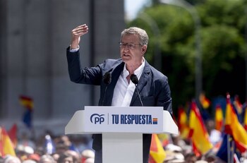 El líder del PP, Alberto Núñez Feijóo, ha arremetido duramente este lunes contra Vox por centrar su campaña de las elecciones europeas en "descalificar" al PP y ha subrayado que el presidente del Gobierno, Pedro Sánchez, estará "encantado" con la formación de Santiago Abascal, ya que el PSOE busca dividir el voto de centroderecha ante esos comicios. "Divide y vencerás. El imperio romano lo utilizaba siempre. Pues bien, yo lo que os propongo es que no nos dividan. Que no nos dividan. Aquellos que queremos que el Gobierno cambie, vamos unidos. Aquellos que queremos que cambie esta pesadilla y empiece un nuevo gobierno, vamos unidos", ha proclamado Feijóo, que ha pedido concentrar el voto de centroderecha en el PP en las europeas. En un mitin en La Muralla en Talavera de la Reina (Toledo) junto al presidente del PP de Castilla-La Mancha, Paco Núñez; el alcalde de Toledo y presidente provincial, Carlos Velázquez; y Eva Poptcheva, que ha sido eurodiputada de Cs y ahora concurre con el PP en la candidatura europea. Feijóo ha sacado pecho de la "multitudinaria" concentración que organizó el PP este domingo en la Puerta de Alcalá --cuya asistencia el PP cifró en cerca de 80.000 personas frente a las 20.000 que apuntó la Delegación del Gobierno-- y ha criticado que el Gobierno y el PSOE se hayan dedicado a "despreciar" y "descalificar" ese acto de su formación. "Desde que lleva Sánchez en el Gobierno jamás reunió a tanta gente", ha aseverado. ¿FACILITAR LAS COSAS AL PSOE O DEFENDER ESPAÑA? Eso sí, Feijóo ha recalcado que lo que le llama "la atención" es el "menosprecio de Vox" a ese acto del PP, cuando había "miles" de ciudadanos que eran "simpatizantes de Vox" y que apoyaron esa protesta "en favor de la Constitución, de la ley y del Estado de Derecho". "Allá ellos, allá su responsabilidad. Si su campaña consiste básicamente en descalificar al Partido Popular, sí puedo asegurar que el Partido Socialista está encantado. Ellos sabrán cuál es el objetivo de Vox, si facilitarle las cosas al PSOE o defender España", ha avisado. El presidente del PP, que ha vuelto a pedir al Gobierno que retire la ley de amnistía y convoque elecciones generales, ha animado a acudir a las urnas porque España "no se merece el Gobierno mediocre que tiene" y "no se merece un presidente que haya mentido a la inmensa mayoría de los españoles". ((HABRÁ AMPLIACIÓN))