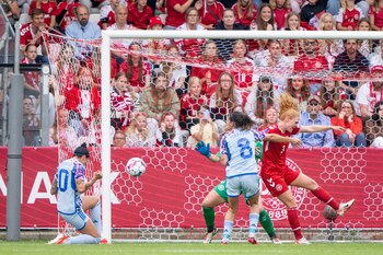 Cada vez que las españolas tenían el balón en el área, las locales, generosas en las ayudas, se agolpaban para despejar cualquier intento peligroso con el plan de recuperar el balón para salir al contraataque comandas por Pernille Harder. Pero les faltaba precisión.