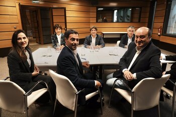 El presidente del EBB del PNV, Andoni Ortuzar, el secretario general del PSE-EE, Eneko Andueza, y el que será el próximo lehendakari, el jeltzale Imanol Pradales, firmarán este miércoles el acuerdo programático del Gobierno de coalición, que recoge los principales objetivos que se marcan para esta legislatura con medidas concretas para hacer frente a los principales retos de país. Aunque este lunes, antes de entrar en la Asamblea Nacional del PNV que ratificó por unanimidad el preacuerdo alcanzado con los socialistas el pasado 10 de junio, Pradales afirmó que todavía el acuerdo programático no estaba culminado porque faltaban "flecos", este se ha cerrado hoy mismo. De esta forma, el documento, que consta de 130 páginas, será suscrito mañana a las 11.00 horas en el Parlamento Vasco por los máximos representantes del PNV y del PSE-EE, y Pradales, en víspera del pleno de investidura en el que el candidato jeltzale saldrá elegido lehendakari en primera votación por mayoría absoluta. El acuerdo de coalición se firmará, como ha ocurrido en las dos anteriores ocasiones en las que PNV y PSE-EE han formado Ejecutivo, en la mesa Simón Bolivar, procedente de la casa palacio de Simón Bolívar de Ziortza-Bolibar (Bizkaia), ubicada en el hall de la segunda planta de la Cámara vasca. Tras la firma protocolaria del pacto, Ortuzar y Andueza, ya sin Imanol Pradales, comparecerán públicamente para explicar el acuerdo.