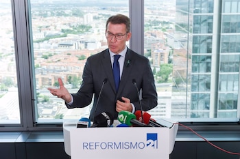 El impulso de 'Reformismo21' en Bruselas coincide con la visita de Feijóo a la capital belga para participar en la cumbre del PPE, previa al Consejo Europeo, donde tiene previsto exponer a su familia política la situación que afronta España con el Gobierno de Pedro Sánchez, al que los 'populares' ven "acorralado" por los casos de corrupción.