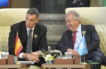 Esa misma noche, Sánchez acude junto al secretario general de Naciones Unidas, Antonio Guterres, y el resto de líderes a la cena oficial que ofrecen Los Reyes, Felipe VI y Letizia.