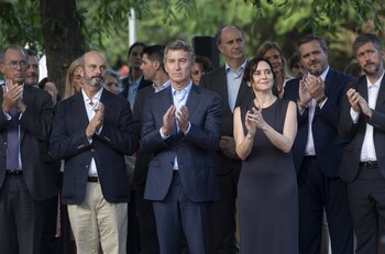 Por su parte, la presidenta madrileña ha pedido el regreso del "espíritu de Ermua" ante el "robo" por parte de "los cómplices de ETA" de la legitimación al Estado de Derecho "por siete votos", y ha propuesto empezar "por no volver a tolerar, sin usar las herramientas de la justicia y que ningún partido se presente a las elecciones con condenados por terrorismo en sus listas".