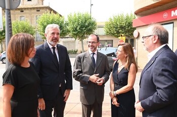 La alcaldesa de Zaragoza se ha desplazado hasta la localidad natal de Lambán acompañada por el consejero municipal de Participación y Régimen Interior del Ayuntamiento de Zaragoza, Alfonso Mendoza.