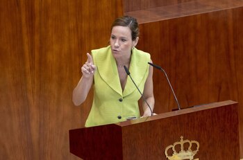 La portavoz de Vox en la Asamblea de Madrid, Isabel Pérez Moñino, ha dicho este miércoles que su partido no quiere "símbolos políticos" en los colegios públicos madrileños en alusión a la bandera de Palestina.