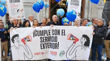 Convocados por los sindicatos CSIF, CCOO y UGT, los trabajadores del Servicio Exterior, dependientes de varios ministerios que tienen oficinas fuera de España además de Exteriores, han querido denunciar el "escenario de precariedad insostenible" en el que se encuentra este colectivo de 5.500 personas.