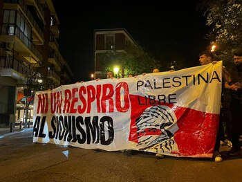 Los manifestantes han ido acercándose a la plaza de Lavapiés a las 21.00 horas acompañados por banderas palestinas y kufiyas, para después comenzar su marcha por calle de Argumosa, tras encender un fumógeno ante la entrada de una famosa cadena de supermercados, acusados por los manifestantes de "complicidad" y "apoyo al genocidio contra Palestina".