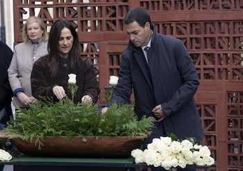 Junto a la escultura se ha instalado un pebetero, ante el que se han colocado las flores que han depositado los participantes en el acto. En el transcurso de la ceremonia, dedicada a la memoria de las víctimas, se han guardado dos minutos de silencio y se ha escuchado el himno 'Agur jaunak eta andreak'.
