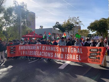 Carteles con mensajes como “Embargament d'armes integral i fi a les relacions amb Israel” y “Des del riu fins al mar Palestina vencerà” acompañaron la marcha organizada en el centro de Barcelona, donde cientos de personas exigieron el cese de las relaciones oficiales y comerciales con el gobierno israelí, así como la suspensión de compraventa de armamento en el contexto del conflicto en Oriente Medio. Según informó el Ayuntamiento de Barcelona, alrededor de 800 manifestantes participaron en la protesta, que tuvo lugar el sábado y fue convocada por la Comunitat Palestina de Catalunya, Prou Complicitat y la Red Solidaria contra la Ocupación de Palestina, entre otros colectivos.