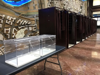 El hall del Ayuntamiento de Zaragoza será el colegio electoral más grande de Aragón. Allí hay instaladas 14 mesas electorales y, al igual que en el resto de colegios electorales, en cada mesa habrá una única urna, porque solamente son elecciones autonómicas, a diferencia de comicios anteriores en los que también eran municipales.