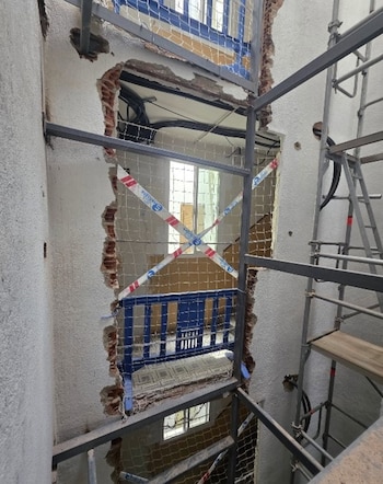 Durante su declaración judicial, los vecinos han relatado que las intervenciones en el inmueble comenzaron en noviembre de 2024 y que, desde entonces, se ejecutan trabajos que "empiezan pero no se terminan", con andamios permanentes, boquetes abiertos y actuaciones que consideran especialmente agresivas.