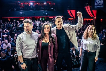 El acto protagonizado este miércoles por el portavoz de ERC en el Congreso, Gabriel Rufián, y el dirigente de Más Madrid, Emilio Delgado, sobre el futuro de la izquierda ha desbordado todas las previsiones de la organización y ha contado con una nutrida representación política de los partidos de Sumar, ERC, Chunta Aragonesista, excargos de Podemos e incluso un diputado del PSOE.