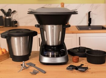 Una de sus características más destacadas es su capacidad para cocinar hasta 4 platos simultáneamente gracias a su jarra doble de acero inoxidable y su septillo. Además, su jarra Habana con recubrimiento cerámico antiadherente asegura una cocción uniforme y de alta calidad. También incluye una báscula incorporada de alta precisión que facilita la medición exacta de los ingredientes. Por otro lado, el robot tiene wifi y desde su aplicación Mambo App los usuarios pueden controlarlo a través del smartphone, así como acceder a recetas guiadas paso a paso o personalizar sus platos favoritos.