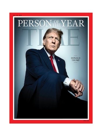 Trump, que venció a la vicepresidenta Kamala Harris en las elecciones del 5 de noviembre, aparece esta semana en la portada de la revista con su característica corbata roja y una pose pensativa.