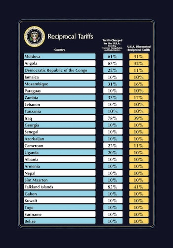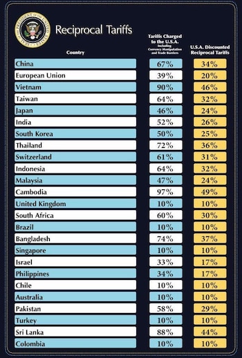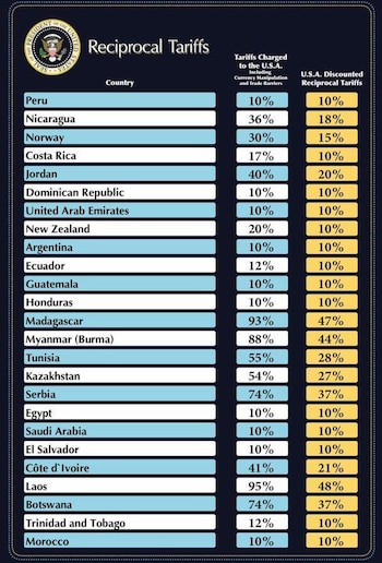 Desde el 9 de abril, Estados Unidos comenzará a aplicar tarifas específicas más elevadas a los países que considera “los peores infractores” en sus relaciones comerciales. Entre ellos: