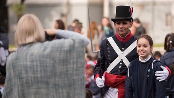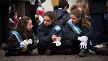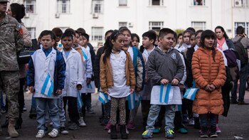 Es habitual que cada 20 de junio el Ejército convoque a alumnos de cuarto grado de colegios públicos y privados para "prometer" lealtad a la Bandera junto a efectivos de la institución.