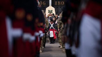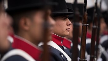 "De estos chicos que hoy prometen la Bandera, saldrán los profesionales civiles o militares de la futura Argentina", remarcó el jefe militar. Luego hubo un desfile de tropas y alumnos en la Plaza de Armas del Regimiento, ubicado en el barrio porteño de Palermo.