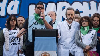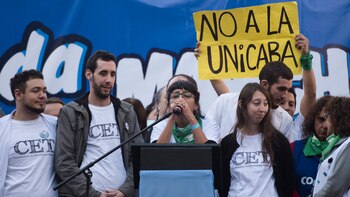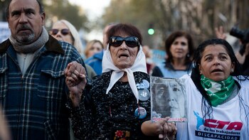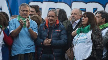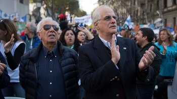 En el acto hubo dirigentes políticos, madres de Plaza de Mayo, docentes y dirigentes de diversos gremios docentes. La concentración tuvo lugar en el centro porteño.