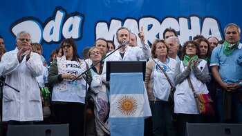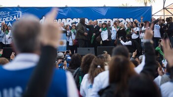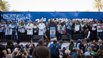 La "Marcha Federal" culminó con un acto central en la Plaza de Mayo. Hubo discursos críticos para los gobiernos de María Eugenia Vidal y Mauricio Macri.