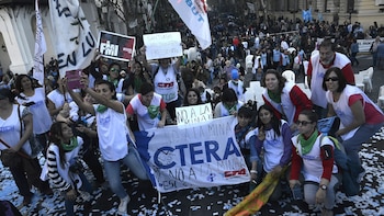 Los gremios docentes renovaron su reclamo para ser convocados a una paritaria nacional en una multitunidaria marcha en Plaza de Mayo