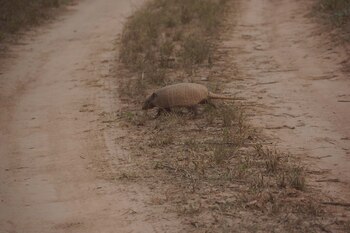 Un tatú mulita (armadillo) cruzando el camino