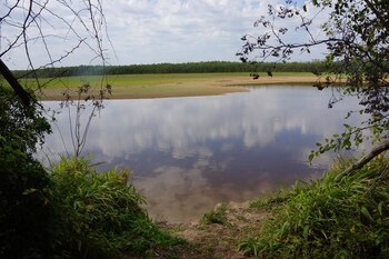 Otra vista de una laguna, parcialmente tapada por los camalotes