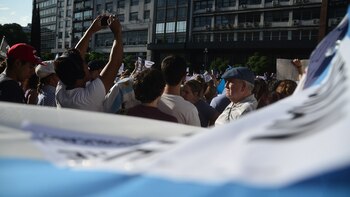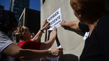 En el acto realizado en la Plaza del Vaticano, a escasos metros del Palacio de Justicia, estuvieron presentes la madre del ex fiscal, Sara Garfunkel, y su hermana, Sandra Nisman, quienes se subieron al escenario principal.