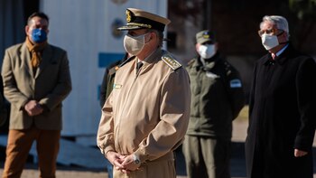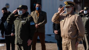 Durante el acto, que se desarrolló este martes en el apostadero, ubicado en la Dársena Norte del puerto de Buenos Aires, Cafiero y Rossi estuvieron acompañados por el jefe del Estado Mayor Conjunto, general de Brigada Juan Martín Paleo; y los jefes de Estado Mayor de la Fuerza Aérea, brigadier Xavier Julián Isaac; del Ejército, general de brigada Agustín Humberto Cejas, y de la Armada, contraalmirante Julio Horacio Guardia.