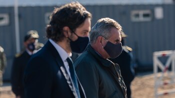 El jefe de Gabinete, Santiago Cafiero, y el ministro de Defensa, Agustín Rossi, inauguraron hoy en el Apostadero Naval de la ciudad de Buenos Aires un centro de aislamiento y atención médica destinado a pacientes afectados levemente por coronavirus, que fue construido por la Fuerza Aérea y la Armada.