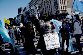 Miles de personas realizaban esta tarde una nueva protesta en contra del Gobierno nacional con una concentración en el Obelisco de la ciudad de Buenos Aires, en los alrededores de la quinta presidencial de Olivos, y en varias ciudades del país.