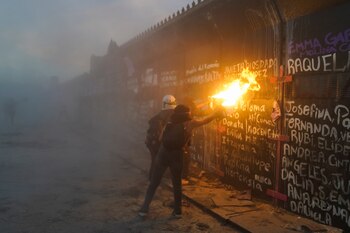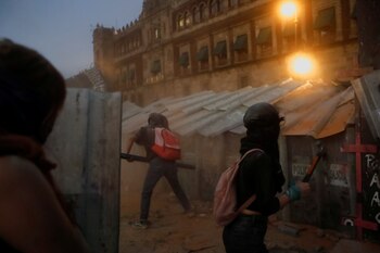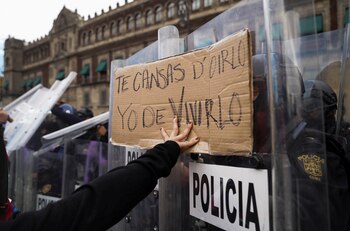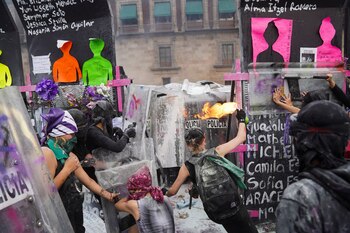 La jornada de protestas de este lunes siguió a las manifestaciones del fin de semana frente al palacio presidencial en Ciudad de México, en las que decenas de mujeres plasmaron los nombres de víctimas de feminicidio en vallas metálicas colocadas alrededor del edificio.
